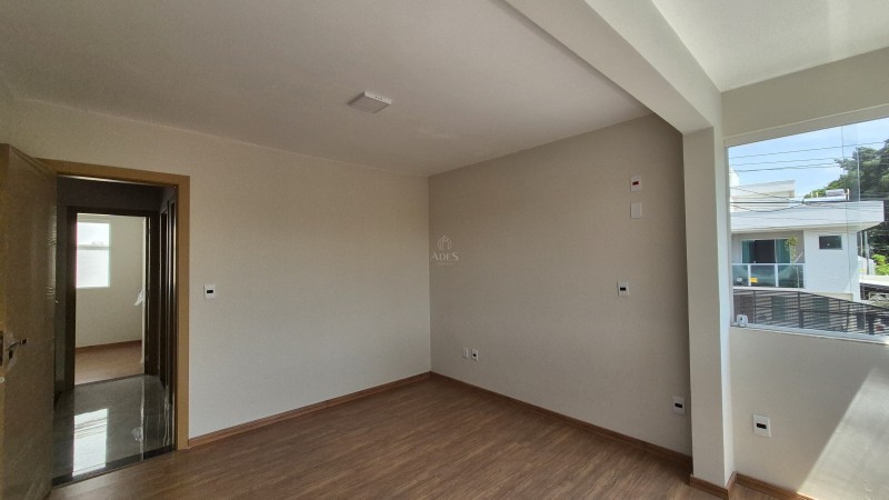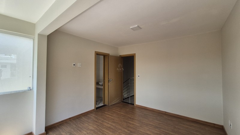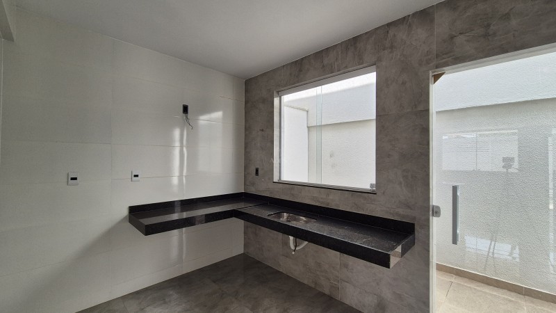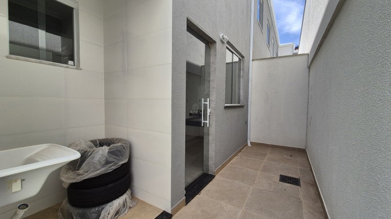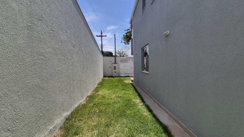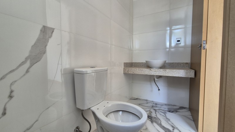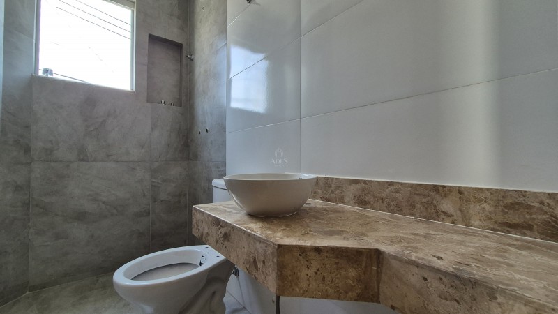 No segundo pavimento, encontram-se três quartos com acabamentos modernos, sendo um deles uma suíte com varanda. Os banheiros, tanto o social quanto o da suíte, possuem bancadas em granito, nichos na área de banho e pré-disposição para aquecimento solar, agregando valor e conforto ao imóvel. Além disso, o imóvel dispõe de duas vagas de garagem paralelas.
