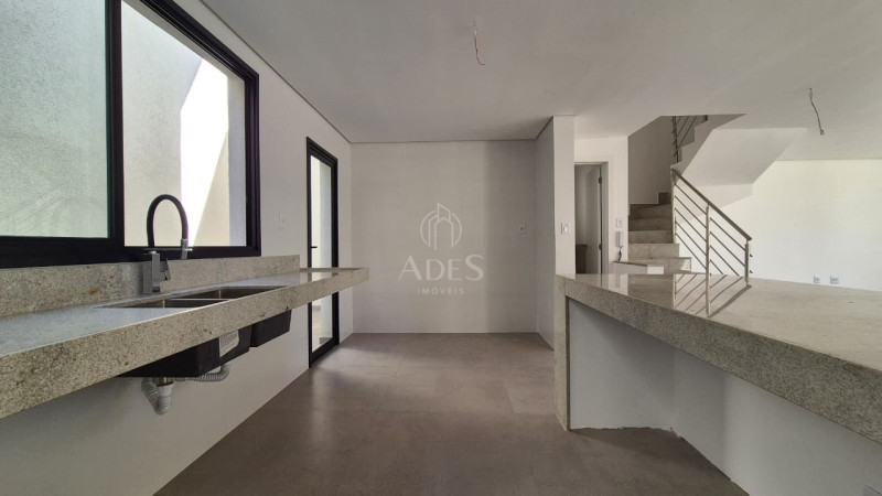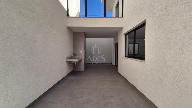O imóvel possui 232m² de área construída em um lote de 190m². No primeiro pavimento, a sala ampla integra dois ambientes e se conecta à cozinha americana, prática e funcional, além do lavabo. A área externa conta com espaço gourmet equipado com churrasqueira a carvão, área de serviço coberta e quintal.