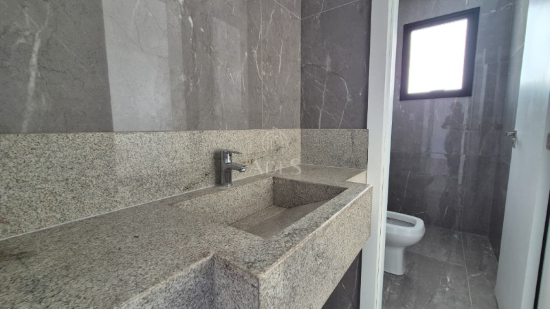 No segundo pavimento estão três quartos, sendo uma suíte master com closet e varanda privativa, além de duas semi-suítes, que oferecem privacidade e conforto para toda a família. Os acabamentos são de alto padrão, com piso em porcelanato, esquadrias em blindex e preparação para aquecimento solar e ar-condicionado.