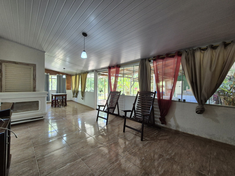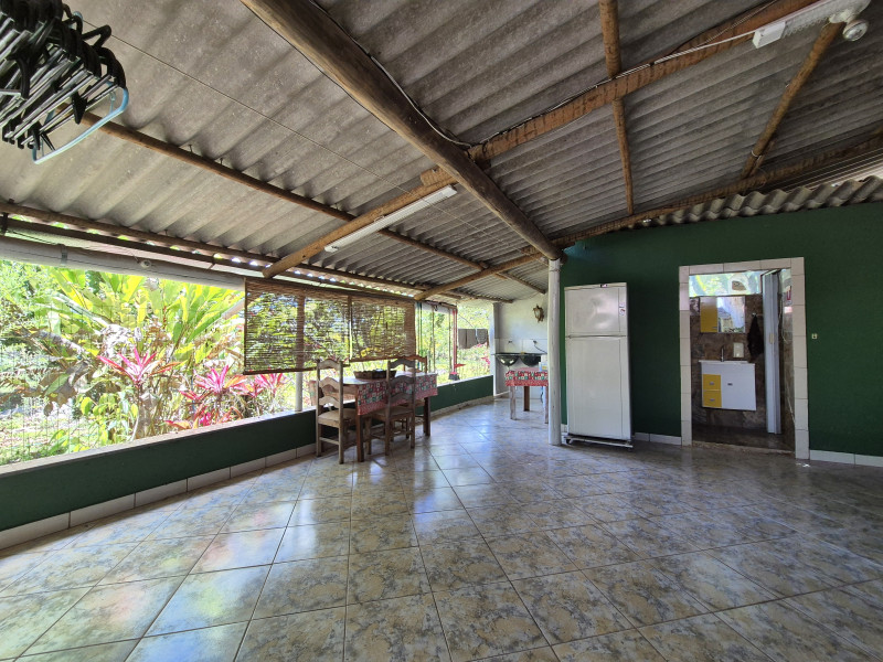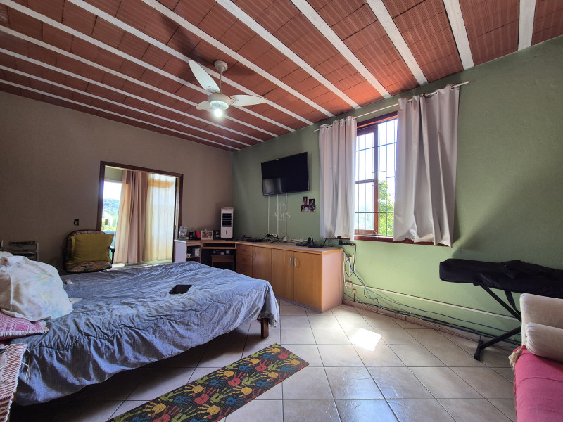 A casa principal é ampla e acolhedora, com 3 suítes, duas cozinhas, uma rústica com fogão a lenha e outra espaçosa com churrasqueira, além de uma sala ampla, perfeita para reunir família e amigos.